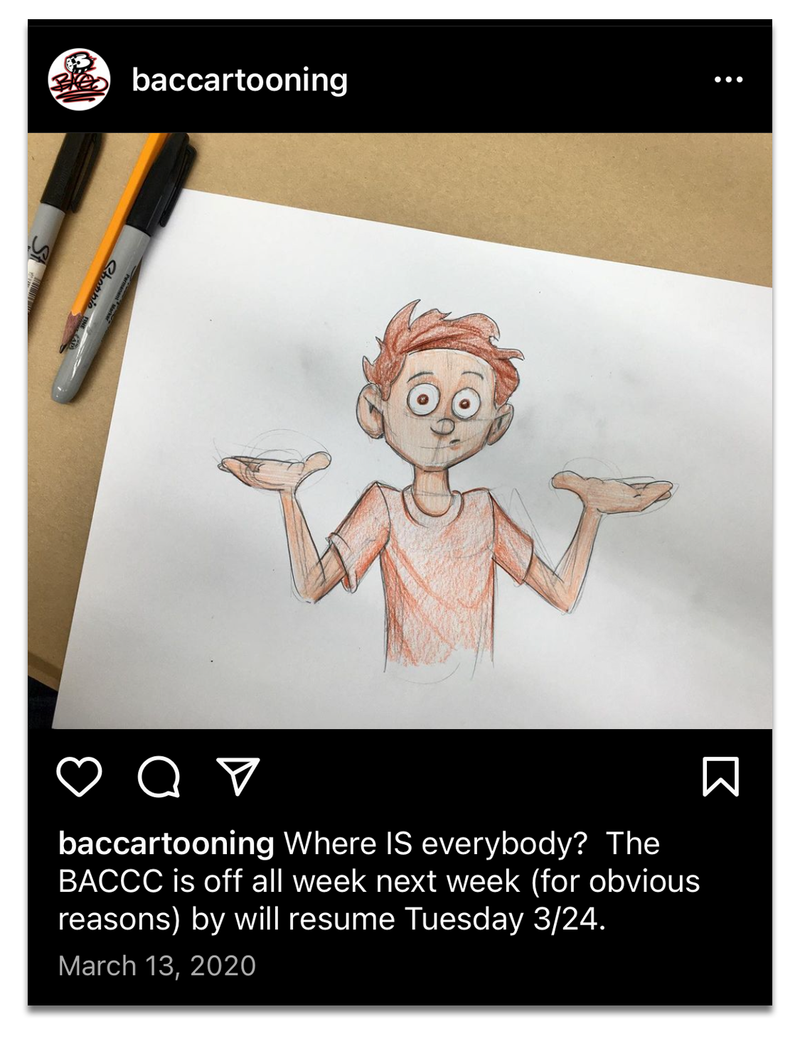 As 2022 brought a sense of normalcy back to our lives, BACCO looks to broaden its horizon, so to speak. Where Zoom once presented a perfect platform during the height of the Pandemic, it's now a perfect platform to reach past Los Angeles, SoCal, or even into other countries. Students from Cali, Canada, or that place where some dude named Shakespeare once lived can all come together as a cartooning tribe, adding to the rich history that is the Cartooning Class.