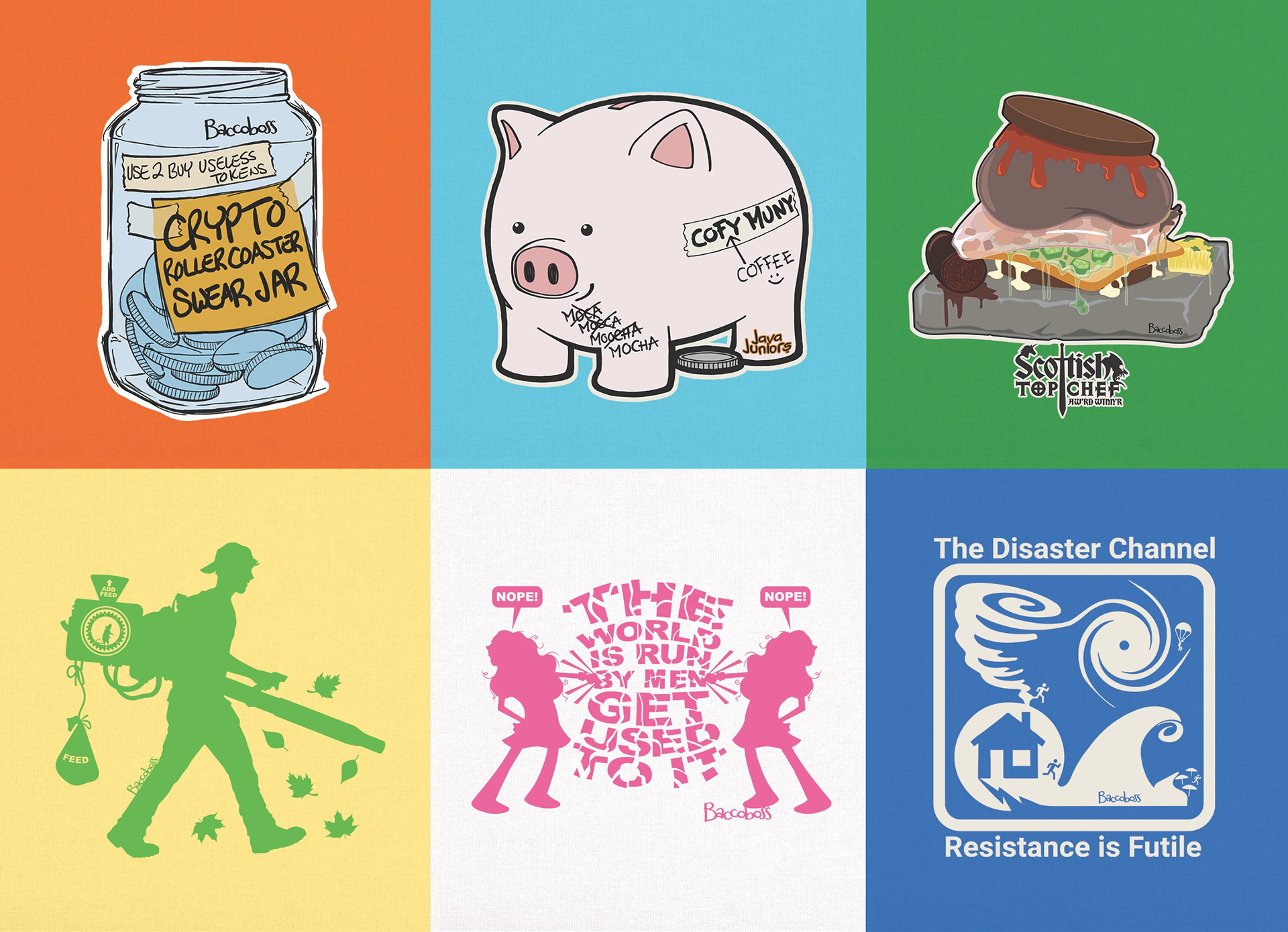 BaccoBoss is the fashion design line of BMA. Apparel (and accessory) graphics for for the person who'd rather not wear crap on their chest.